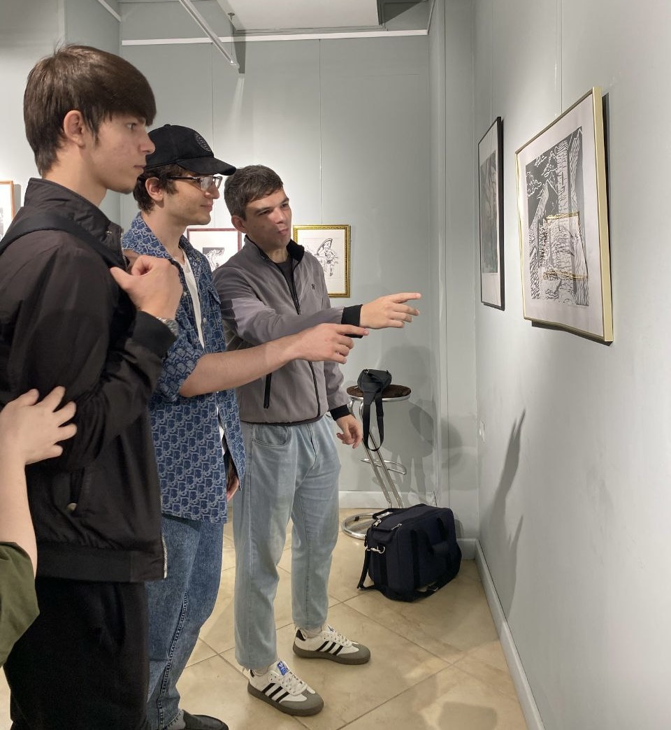 На выставке представлено более 80 графических работ, выполненных в различных техниках печати, таких как резцовая гравюра, литография, из них 16 лучших работ по линогравюре представили учащиеся нашей школы.